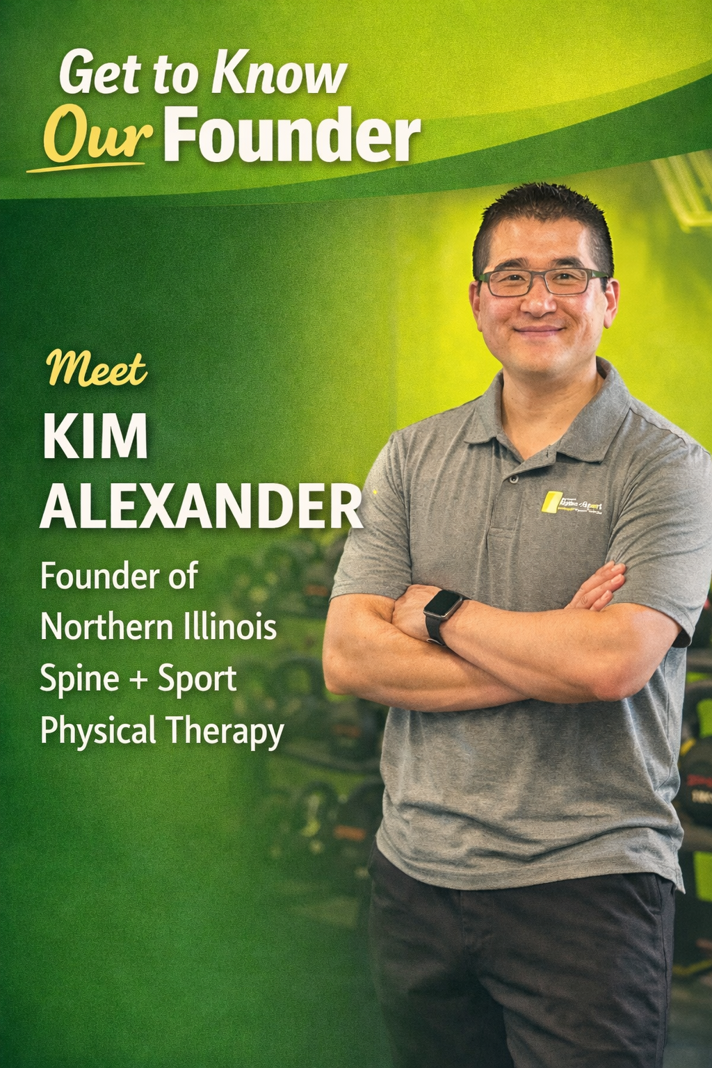 Kim Alexander is a long-time Rockford area resident and the founder of Northern Illinois Spine + Sport Physical Therapy. With a background as an Athletic Trainer and Physical Therapist, Kim brings a deep, movement-focused approach to helping people get out of pain and back to doing what they love. He has continually advanced his expertise through specialized training including ELDOA, Schroth Scoliosis Therapy, EXOS Rehabilitation Mentorship, Functional Movement Screen (FMS), Selective Functional Movement Assessment (SFMA), Titleist Performance Institute (TPI), and IDN Dry Needling. Kim specializes in rehabilitating back and neck disorders and injuries, combining ongoing education with hands-on experience and collaboration with top spine surgeons in the area, a focus he has maintained for more than 11 years at the Spine Center.